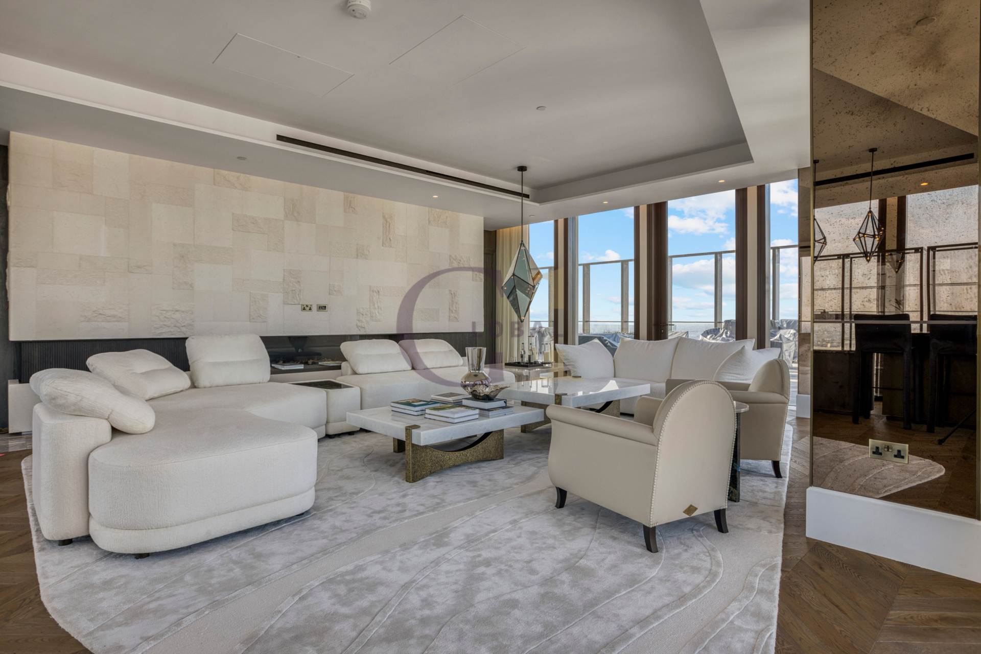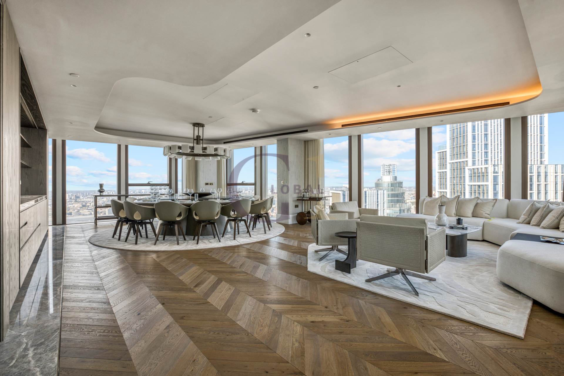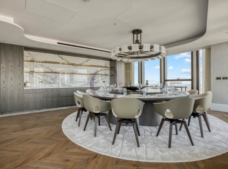Accessed via a private lift, the penthouse showcases an exceptional array of beautifully appointed rooms including two principal bedroom suites, further 3 bedrooms suites, two kitchens, a boardroom, office, TV room, wine room, tea room, multiple reception areas, bars, and a formal dining room. There are 4 guest toilets spread throughout the penthouse. Each space has been finished and furnished to the highest standard, with abundant natural light and sophisticated detailing throughout.