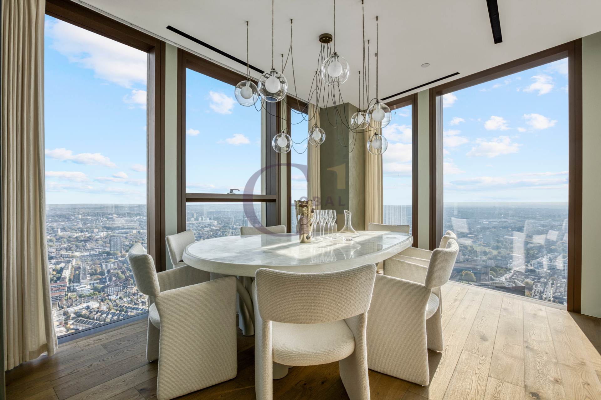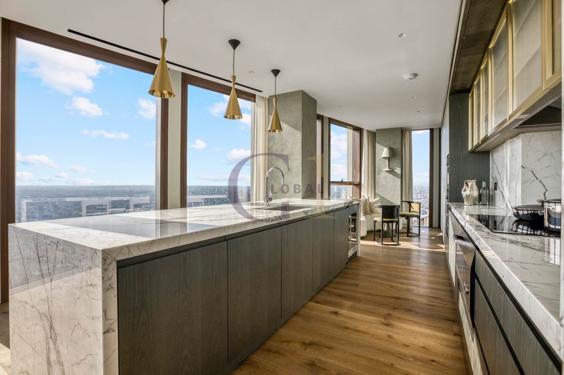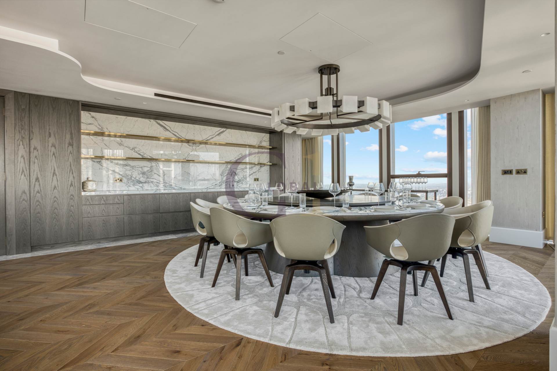 Accessed via a private lift, the penthouse showcases an exceptional array of beautifully appointed rooms including two principal bedroom suites, further 3 bedrooms suites, two kitchens, a boardroom, office, TV room, wine room, tea room, multiple reception areas, bars, and a formal dining room. There are 4 guest toilets spread throughout the penthouse. Each space has been finished and furnished to the highest standard, with abundant natural light and sophisticated detailing throughout.