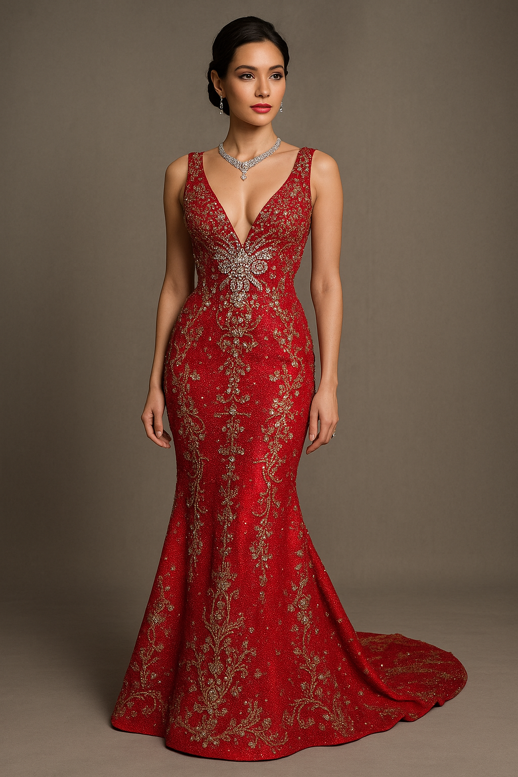 At first glance, The Nightingale appears to be a strikingly elegant red gown made from luxurious fabrics like chiffon, satin, and silk. But the real reason for its extraordinary price tag lies in its embellishments. The dress is adorned with over 750 real diamonds, with the centerpiece being a show-stopping 70-carat diamond on the bodice. The diamonds alone account for a significant portion of the dress’s astronomical value.